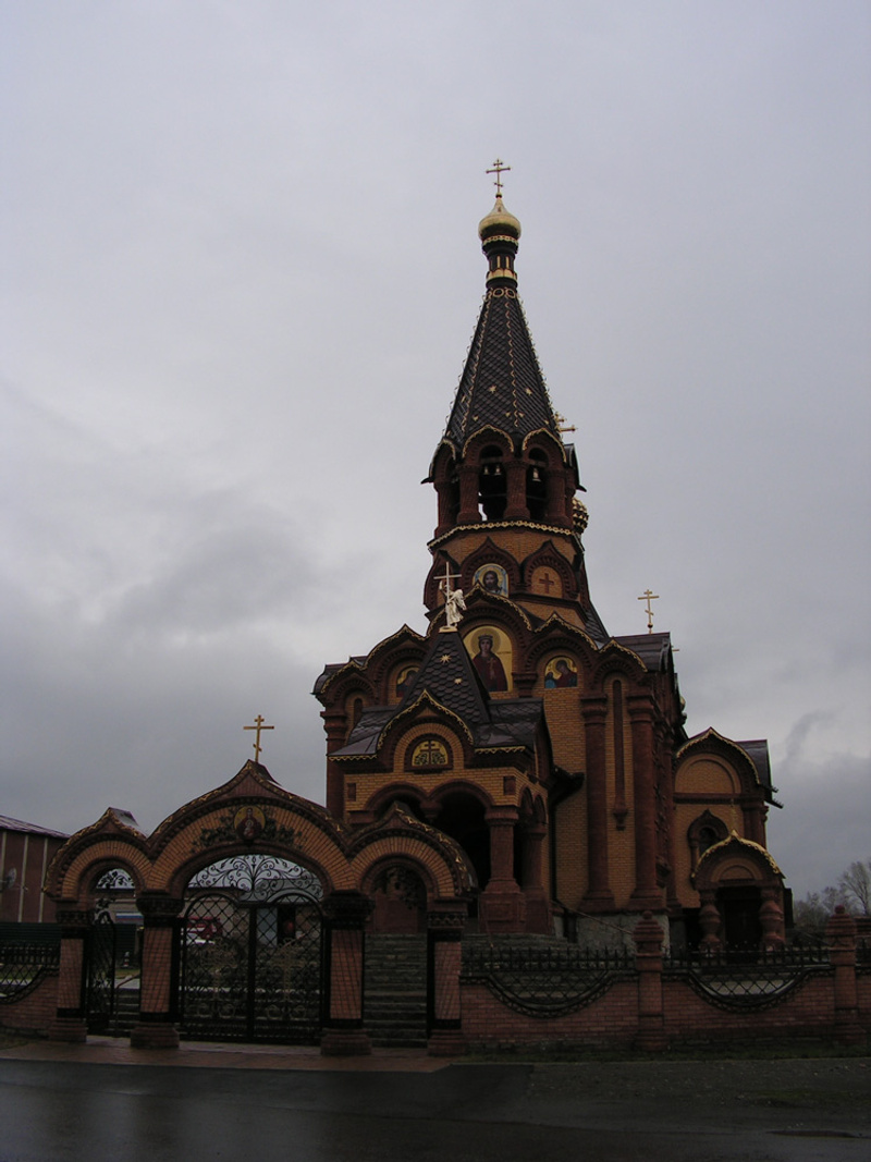 В Сростках же не только едят! Там же еще есть музей В. Шукшина! «Заедем на обратном пути», - думаю я. Но в голове моментально возникают строки из отчета Павла (3sfe) про то, что он пожалел, о том, что сразу не заехал в музей. Так что, уверенно сворачиваю к музею. Едем по улице и сразу в глаза бросается церковь. Недавно постоенная, но, по моему мнению, являющаяся не меньшей достопримечательностью села, чем сам музей.