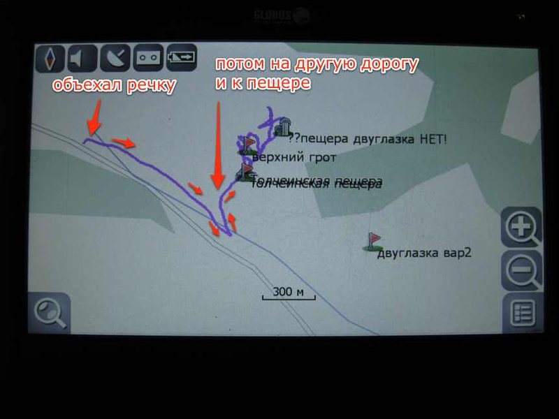 Походу из указанной ветки брал мои точки. Перечень точек не закончен - это раз. Точки брались с навитела навигатора - это два. Разница в 1 км исключена. На фотографии не "верхний грот".сорри, соврал - верхний грот у меня выше в навигаторе. Эта помечена как "Толчеинская". Верхний грот я тоже прошел, судя по трекам