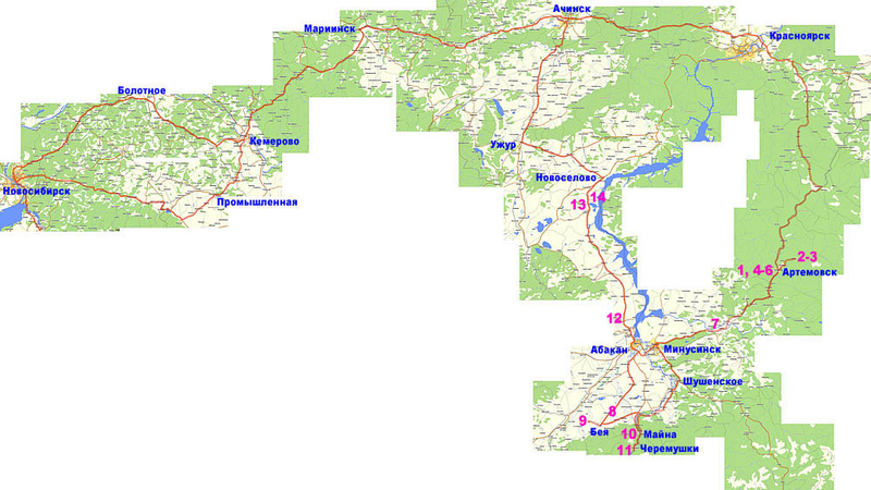 15 июня: Артемовск-Абакан-Бея-Уты-Саяногорск-Майна-Черемушки-Майна-Шушенское-Минусинск-Артемовск