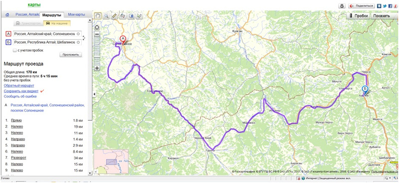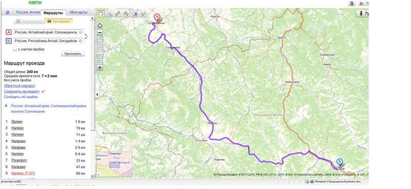 Вот два варианта, с помощью яндексапервый вариант не вариант. из чёрного ануя на мариинск не дорога, а колея тракторная.