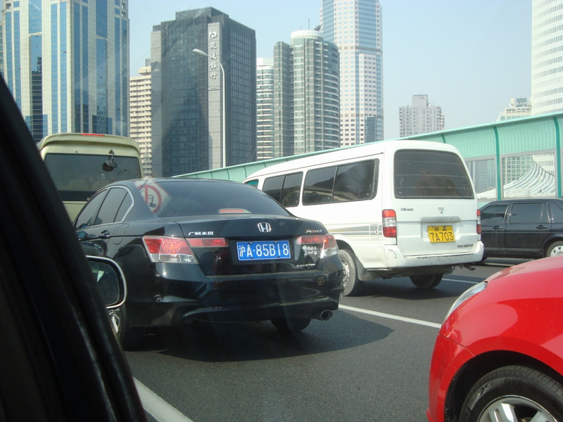 Аварий в Шанхае на удивление мало, за несколько дней, видел всего две небольшие аварии, когда машины просто получили царапины. Такое небольшое число аварий странно, особенно, если посмотреть, как ездят Китайцы, а ездят они, по нашим меркам, просто УЖАСТНО. Я уверен, что средне статистический китайский водитель сумел проездить бы у нас в городе максимум 15 минут, после чего он: либо попал бы в аварию, либо ему бы набили морду. ЭТО ПРОСТО АБЗАЦ, как они в городах ездят: подрезают жестко, любую машину, хоть легковую, хоть грузовую, ездят по встречке, через двойную сплошную, за бордюром, разделяющим полосы, на красный, налево, на перерез встречному потоку, как угодно. При этом все, любой свой маневр обозначают коротким сигналом клаксона. Первое впечатление Шанхая - весь город пищит (это потом уже стало понятно, что Шанхай не самый пищащий город). Второе впечатление - чувство страха - когда перед машиной, в которой ты сидишь, с второстепенной улочки, прямо перед носом, вылетает китайский хлопец, сигналя в дудку; или едешь по широкой дороги - 4 полосы в одну сторону и тебе на встречу, в третьей полосе едет автобус, или шофер - везущий тебя по второму ряду, вдруг резко ныряет в левый поворот, прямо перед едущим в первом ряду грузовиком… Первых два дня страшно, потом привыкаешь.