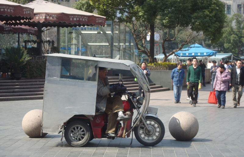 Моторикшы. В спальных районах, если тебе нужно доехать, с полными руками покупок, пару километров от торгового центра до дома, нанимаешь моторикшу (обычно 5 юаней – 25 рублей).