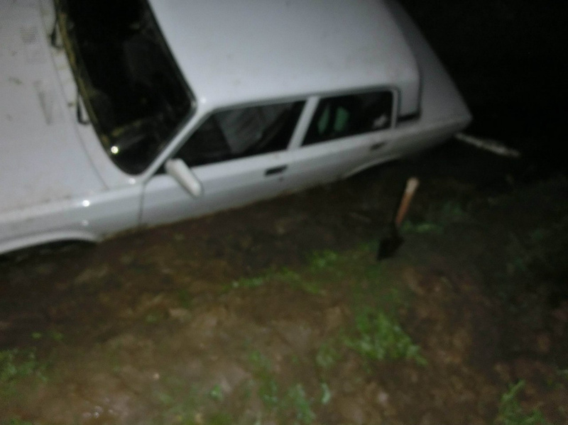 потом еще копал, но вода прибывала, машина закапывалась все ниже.