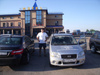 Вот впереди показались крупные строения! Ура! "Рано радуешься" - сказал голодный свифт и задергавшись остановился у обочины. Мда... Невесело... Но что поделаешь, достаю канат, цепляю, выхожу и начинаю голосовать. Почти сразу останавливается японский грузовичок, с омским номером. Говорю, так и так. Цепляемся. Говорит до заправки 2 километра всего не доехал. Тронулись, мимо проплывает стела - "Омская область". Ну здравствуй, область) Подъехали, протягиваю деньги - категорически отказывается. Спасибо огромное тебе, милый человек на грузовичке-цистерне гос. номер Р918ЕМ55 )
