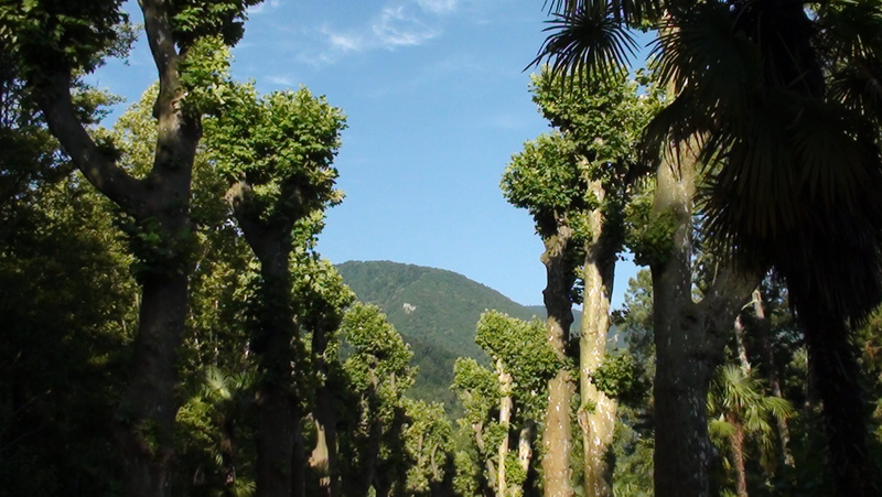 Первым делом конечно сходили на пляж. Берег галечный. Море как море, тыщу раз уже такое видели. Забегая вперед скажу, что какого-то особенного моря я в Абхазии так и не увидел, в Краснодарском крае все абсолютно то же самое. Может только народу поменьше. Потом поехали в Гагру, благо недалеко. погуляли по приморскому парку, посмотрели на пальмы разных видов, эвкалипты, магнолии, лавровые кусты, бамбук. Вообще растительность побогаче чем в Сочи. Понравилось, что в Гагре на парковках для туристов дежурит милиция и присматривает за авто. Начитались про то, что в Абхазии много жуликов оставлять машину без присмотра было немного боязно. Ради интереса подошел к дядьке, торгующему экскурсии, спросил по Рицинский парк, озеро Рица и Гегский водопад. Он конечно стал уверять, что надо непременно ехать на УАЗе, что если на Рицу мы на своем авто доедем, то на Гегский водопад вообще никак и что нас туда даже не пустят. Наивный, он не знал на чем мы приехали
