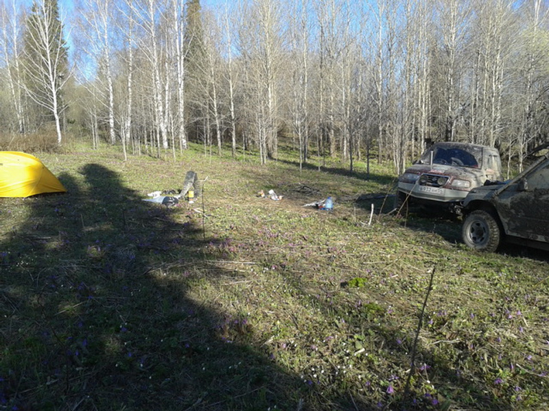 Снега там практически нет. Вверху лежит местами, но препятствий он не создает. Еще хорошо, что вверху грунт полностью не оттаял - держит