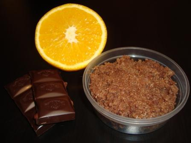 Рецептик: 20гр кремообразной мыльной основы, 30гр смеси масел ши, макадамии и миндального, 70-80гр сахара (по степени рассыпчатости смотрела), эфирки апельсинчик, мандаринчик и грейпфрут, 1ч.л. какао-порошка.А мне вот что-то запах кремообразной основы не нравится