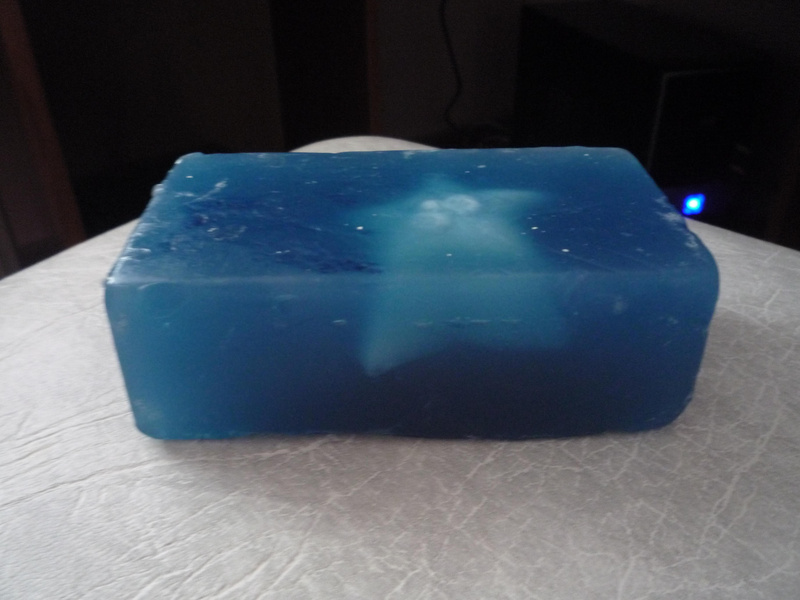 там мыльная основа, масло ванильное, несколько капель масла чайного дерева, краситель пищевой разведенный в глицерине, и ароматизатор - мужские духи, купила в Граните в магазине для мыловаров, то есть это прям специальный ароматизатор с запахом духов..запах ассоциируется с морем, поэтому и мылки делаю в таком стилеМедвежонку 3,5 годика