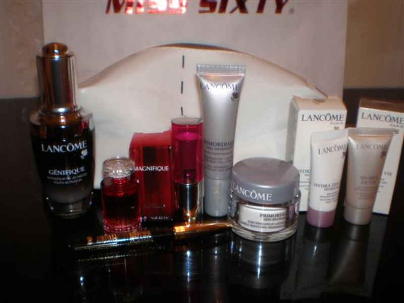 И про подарки нечего неи знаю ?!Вчера купила в ИДБ ланкомовский Женефик, задарили косметичку миниатюр от Ланком: блеск д/губ, карандаш д/глаз, примордиаль дн.крем (15мл) и сыворотка (10мл), п/вода Магнифик (5мл), гидра зен неурокальм ночной (5мл), сывортка secret de vie (5мл)