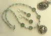 Длина до кулона - 53 см, длина кулона с подвеской - 6 см, длина серег от швензы - 4 см (при желании возможно заменить швензы на застегивающиеся). Еще фото крупнее.