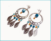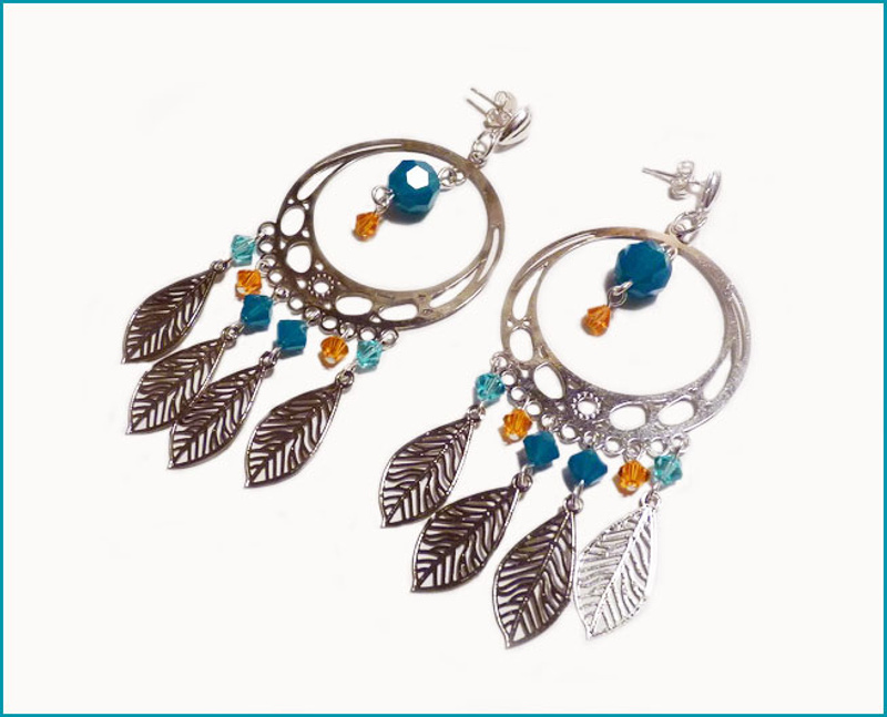 Посеребренные пуссеты; металлическая основа и подвески-листики выполнены в технике "лазерное кружево" - тончайшие и легчайшие; кристаллы Сваровски цветов Caribbean Blue Opal (круглые 8 мм и биконусы 5 мм), Aqua (биконусы 4 мм) и Sun (биконусы 4 мм). Длина от пуссеты - 7 см.