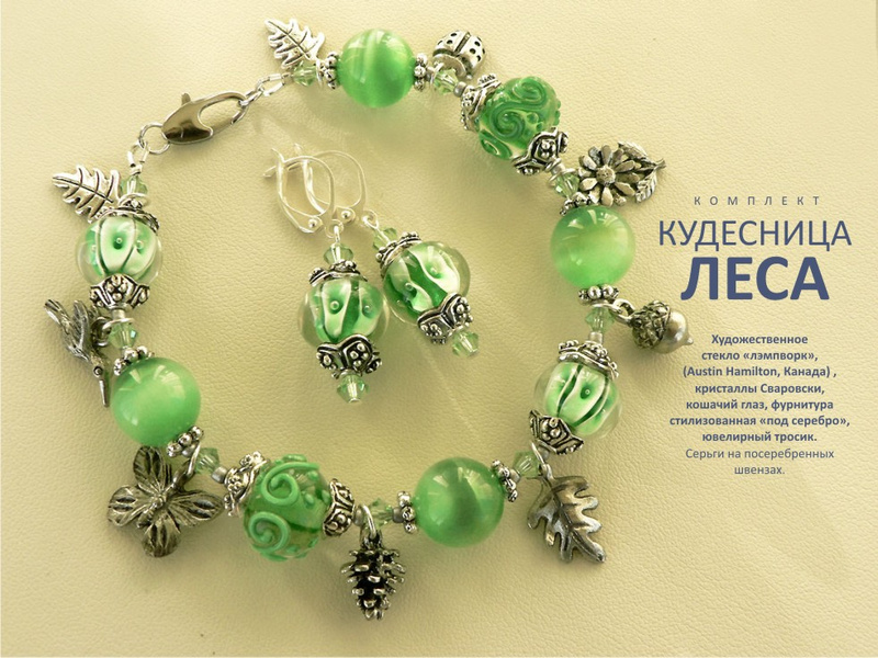 Художественное стекло «лэмпворк» (Austin Hamilton, Канада) , кристаллы Сваровски, кошачий глаз, фурнитура стилизованная «под серебро», ювелирный тросик. Серьги на посеребренных швензах. Браслет - 750 руб., серьги - 200 руб.Ответ на сообщение Бижутерия и аксессуары пользователя Линка
