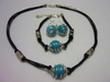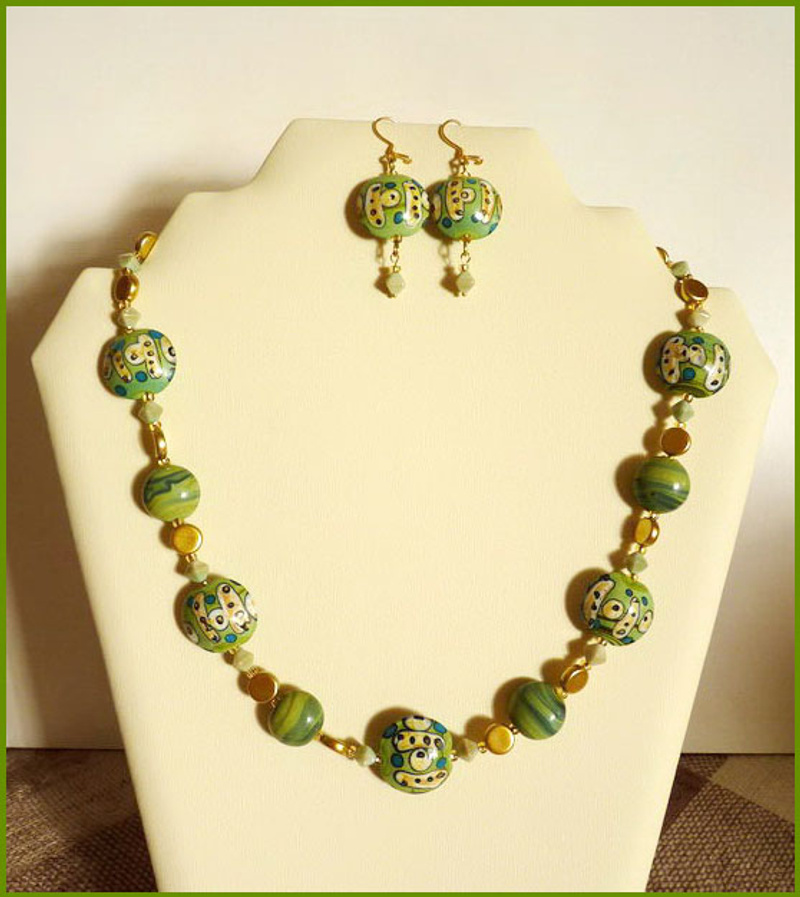 Комплектик на каждый день. Чешский полосатый лэмпворк в сине-зеленых тонах.Продано.
