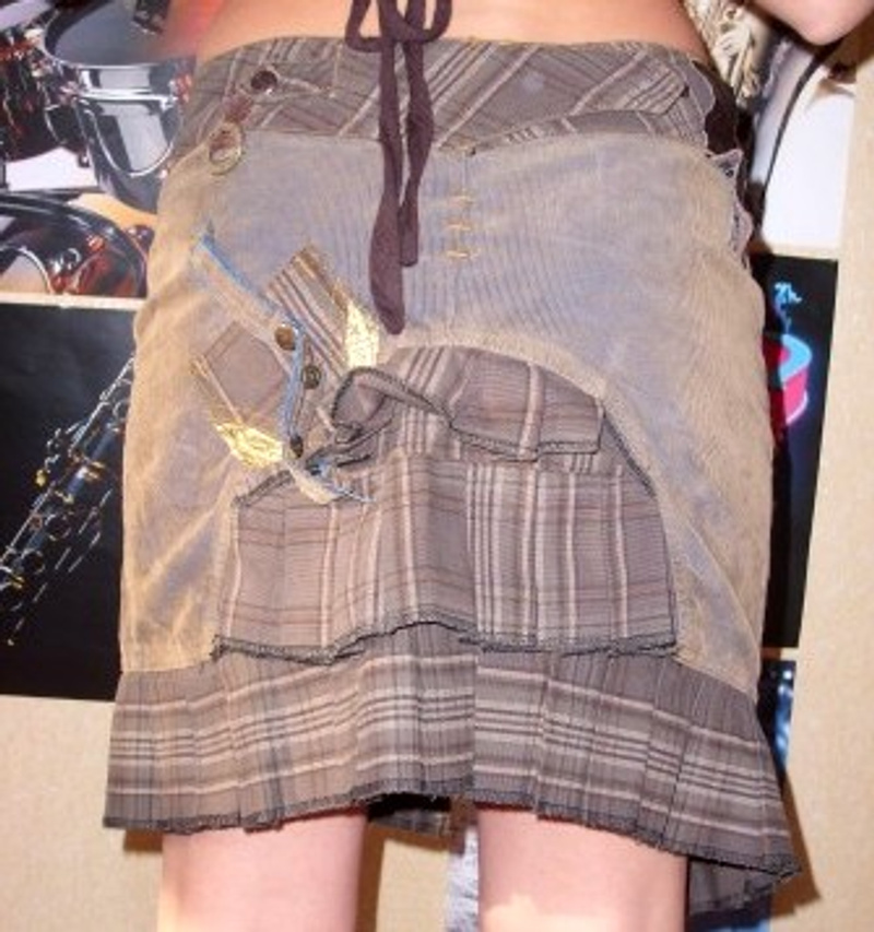 Размер 44 (на ОБ 91-93), на рост 169 длина юбочки чуть выше колена.
