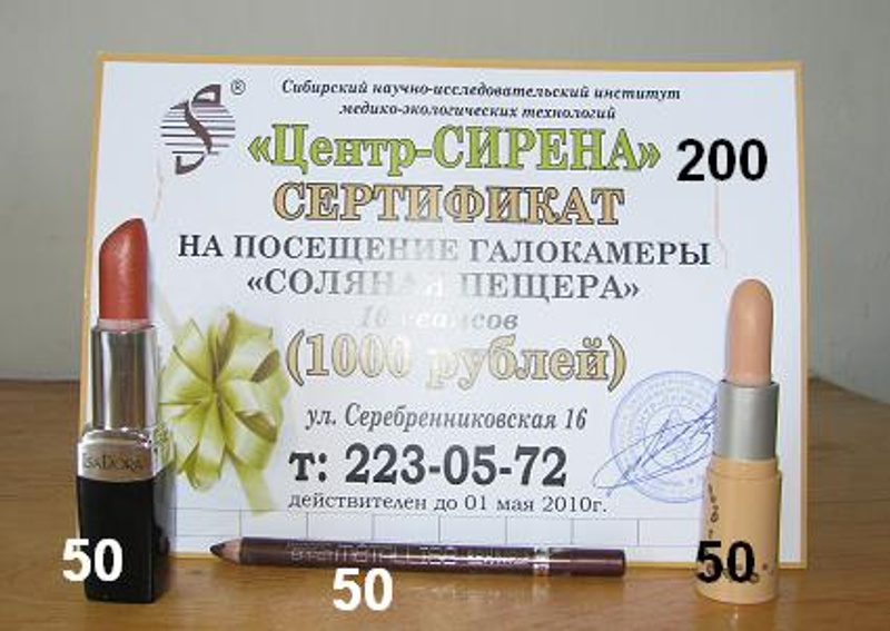 9. Сертификат на посещение галокамеры (СОЛЯНАЯ ПЕЩЕРА), 10 сеансов, номиналом 1000рубл. (ул Серебренниковская,16, ЦЕНТР СИРЕНА). Цена - 200рубл