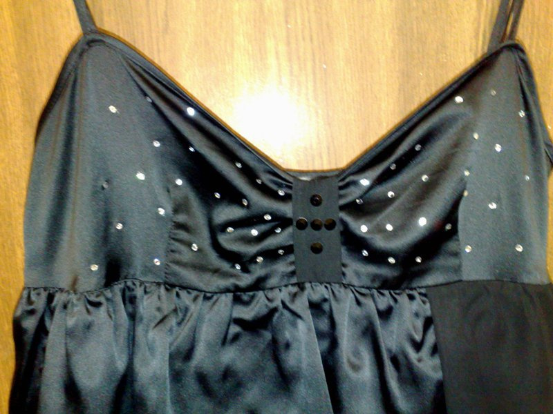 Сама украсила перед стразами своровски(для хорошего блеска). Ткань очень приятная.Размер 46. 2500р.