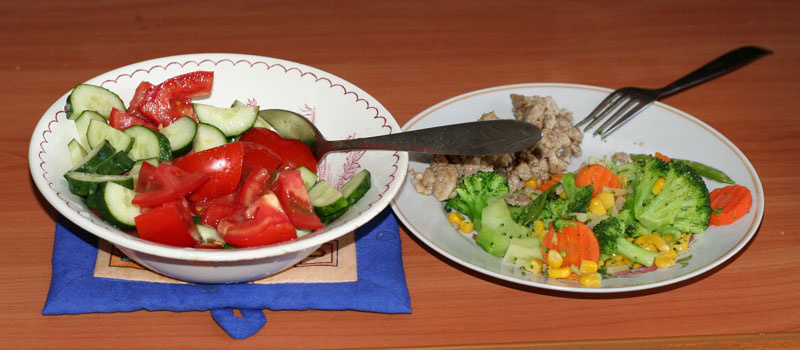 а я сижу, смотрю на овсяные печеньки, мед и малиновое варенье домашнее и пью зеленый чай без сахара. Думаю, что ж я зря так пахала на тренировке чтоль?!! Буду сейчас варить куриный супчик, себе бульончика налью с кусочком грудки, а мужикам всоим с картохой и прочими делами