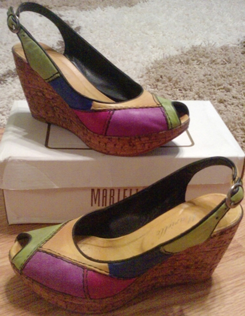 Цвет бронза, вставки под бирюзу. Есть маленькая царапинка на каблучке, конечно не заметна при ходьбе. Покупала за 1499, да еще доставка... Отдам за 500 р. Исправлено пользователем vvorona1 (07.06.10 15:38)