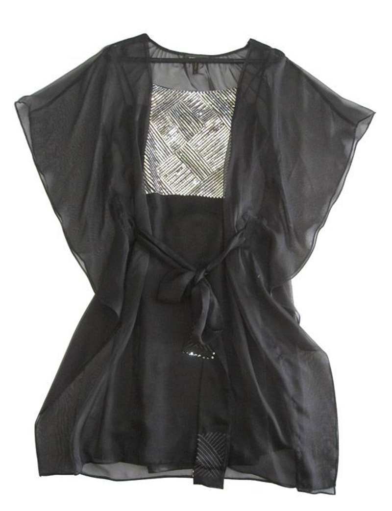 Новое платье-туника из нежного шифона отличного качества. С нижней платьем-майкой из шелка. размер М (44-46) грудь и пояс расшиты паейтками.