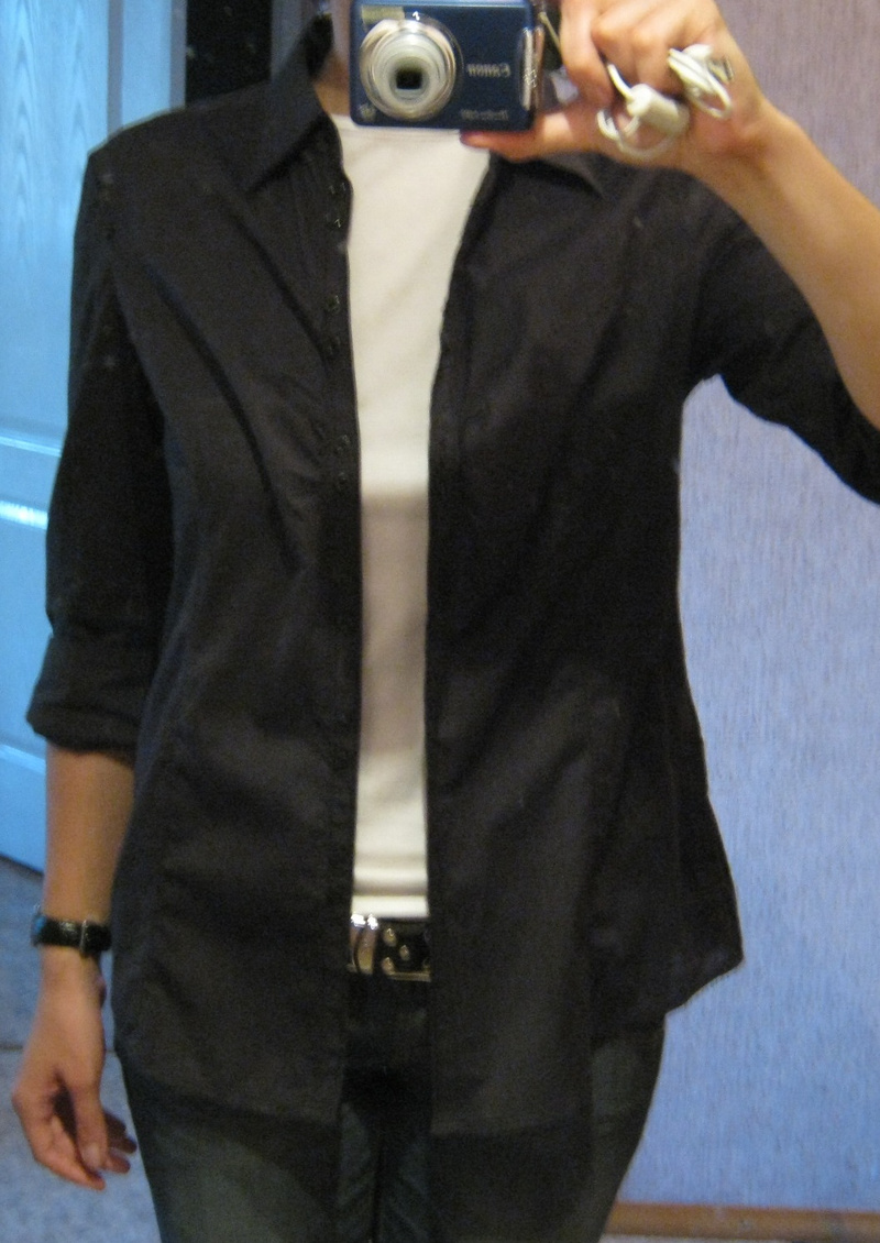 Блузка-рубашка Эсприт. Размер немецкий 40. Наш 46-48. Тонкий хлопок-стрейч. Цвет черный в мелкую серую полоску. По фигуре сидит идеально. Подчеркивает грудь. Состояние идеальное. цена 300р.