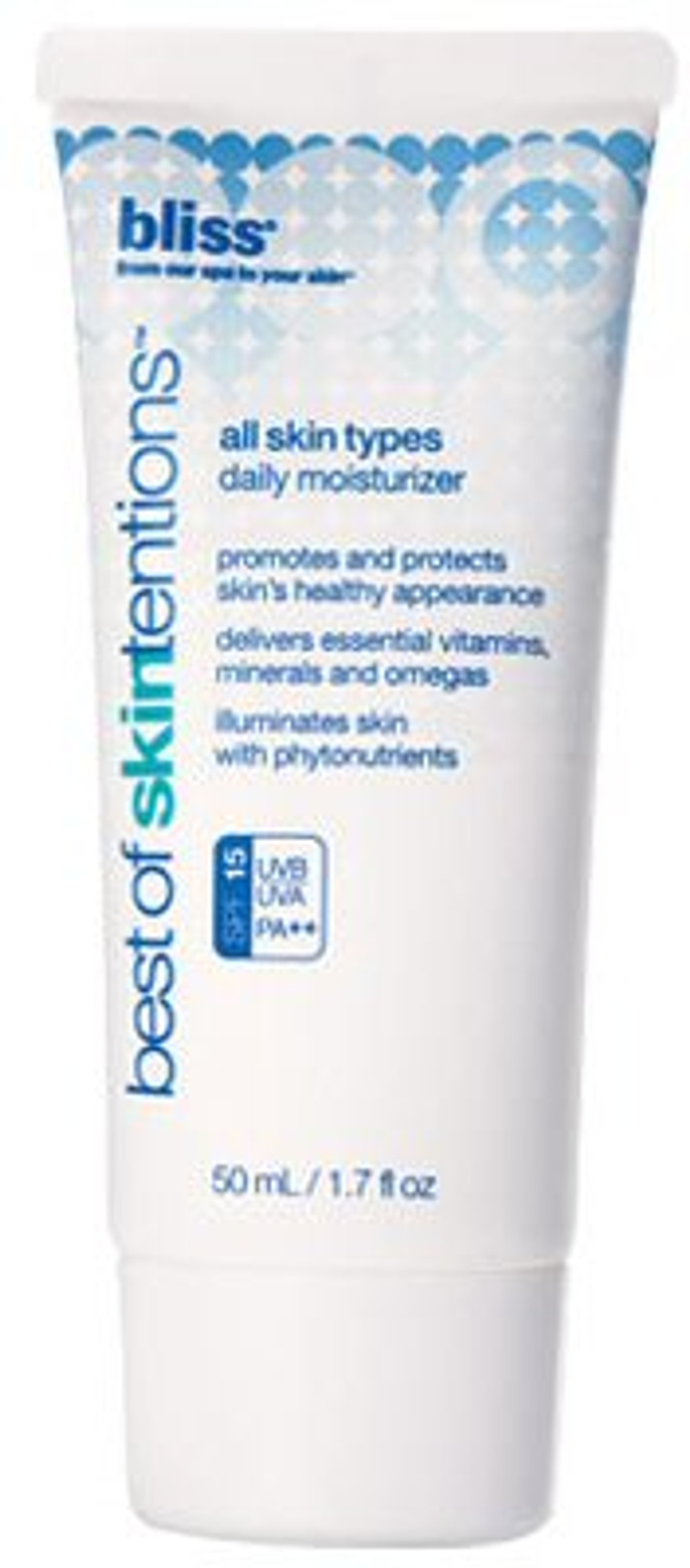 1) Bliss Best of Skintentions - увлажняющий крем с SPF15 для всех типов кожи. Обеспечивает отличную защиту от солнца, антиоксидантный - 250 руб