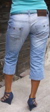 Джинсы -капри из немецкого каталога, новые, р-р 44, цвет шоколадный с потертостями, карманы отделаны кожей., отличное качество ткани, 1500 руб, разумный торг