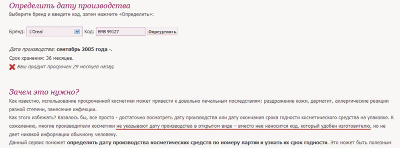 Я в итоге все равно в СП купила ... Главное ссылку полезную нашлаВ продолжение темы просроченной продукции. Летуалевские покупки не подкачали. А вот СП... Воспользовалась найденным сервисом для проверки даты выпуска продукции. Выводы делайте сами