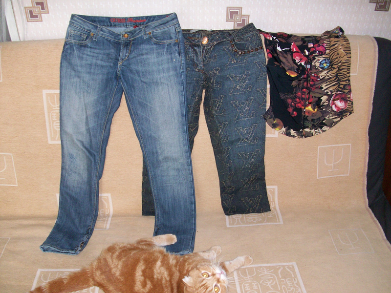 джинсы GUESS р28 наш 42 1000р (не подделка) капри р28 на 42 350р топ 350р (кот не продается)