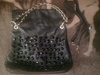 Продам сумку, кожзам, черная; ручка коричневая, текстиль. Одно большое отделение и внутренний боковой карман. Внутри подклад немного замазан пастой от шариковой ручки, внешних дефектов нет. 200 рублей.Сумка ушла к новой хозяйке
