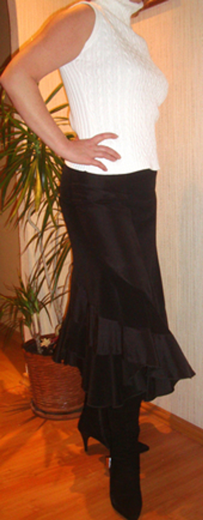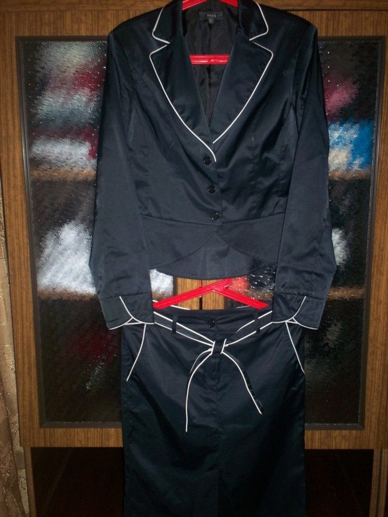 Продам юбку офисную, в мелкую белую полоску. Размер 44-46, при росте 164 - длина по колено.Актуально.