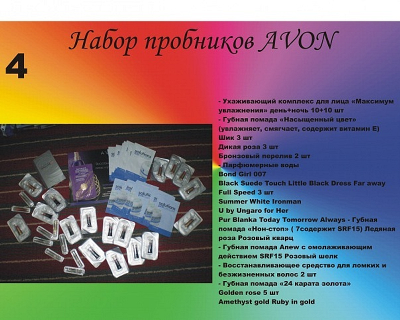 Продам пробнички AVON. Все новенькие. Продавать поштучно не вижу смысла, поэтому поделила на большие кучки примерно однотипные по составу. Состав написан на фото, но если окажется, что плохо видно, спрашивайте. Цена кучки 90 рублей, мне все это стоило гораздо дороже. но эйвоном больше не занимаюсь и нечего им лежать без дела.