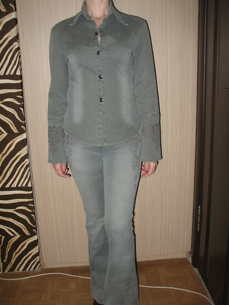 Костюм «2 юбки и кофточка», размер 42, «A & B collection», цвет серый, ткань оч похожа на тонкую шерсть с добавлением к-то синтетич. нити. Обе юбочки отлично садятся и красиво подчеркивают попку, ширина регулируется – по вашей фигуре, кофточка же привлекает внимание к талии и груди. На мне уже «не сидит» как дОлжно .Длина длинной юбочки - 77 см., по бокам 2 разреза по 35 см, объем талии минимальный- 74 см, максимальный -96 см, т.к. отлично тянется. Коротенькая юбочка имеет ассиметричную форму, с бахромой, оч интересно смотрится, подчеркивает красивые ножки. Объем талии минимальный- 72-74 см, максимальный -88 см, длина короткого края 43 см, длинного 59, длина бахромы 6 см.
