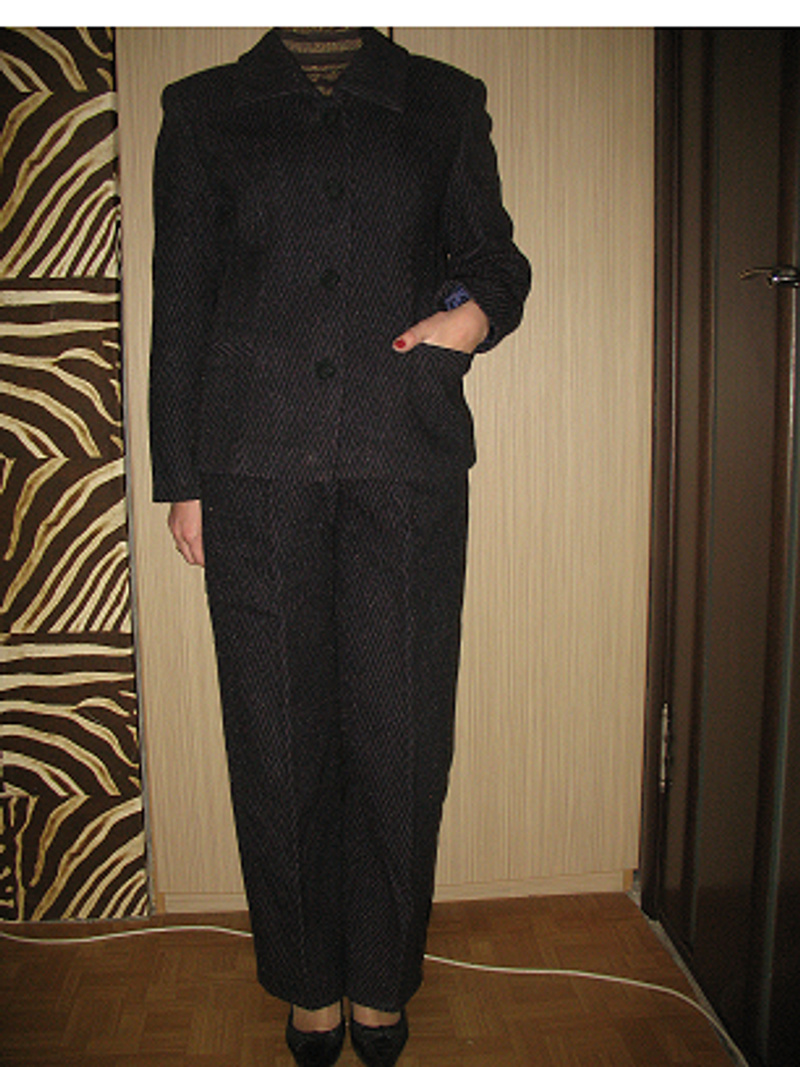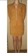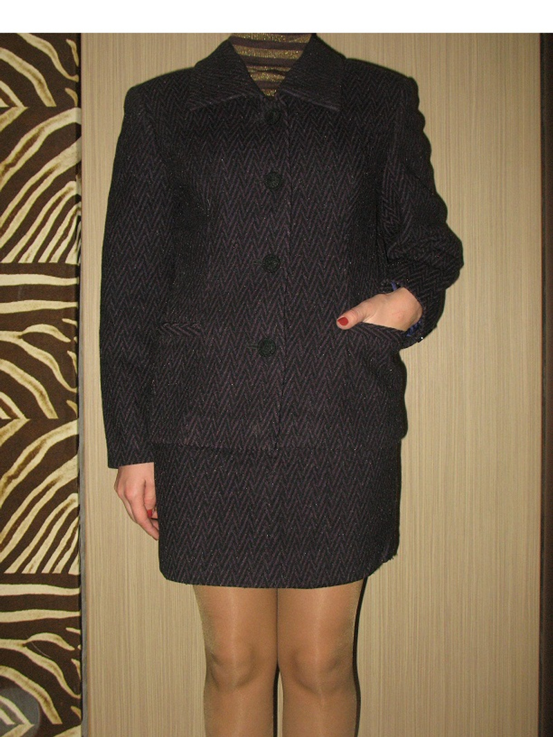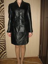 ... костюм из оч тонкой черной кожи , пиджак и юбочка с кокетливым разрезом спереди- над левой коленочкой. К пиджаку есть поясок. Длина юбочки 53 см, объем талии 66 см. пиджак размер 42- 44. Производство Турция. Качество очень хорошее! На фото –юбочка немного помялась, а отвисится- красота!