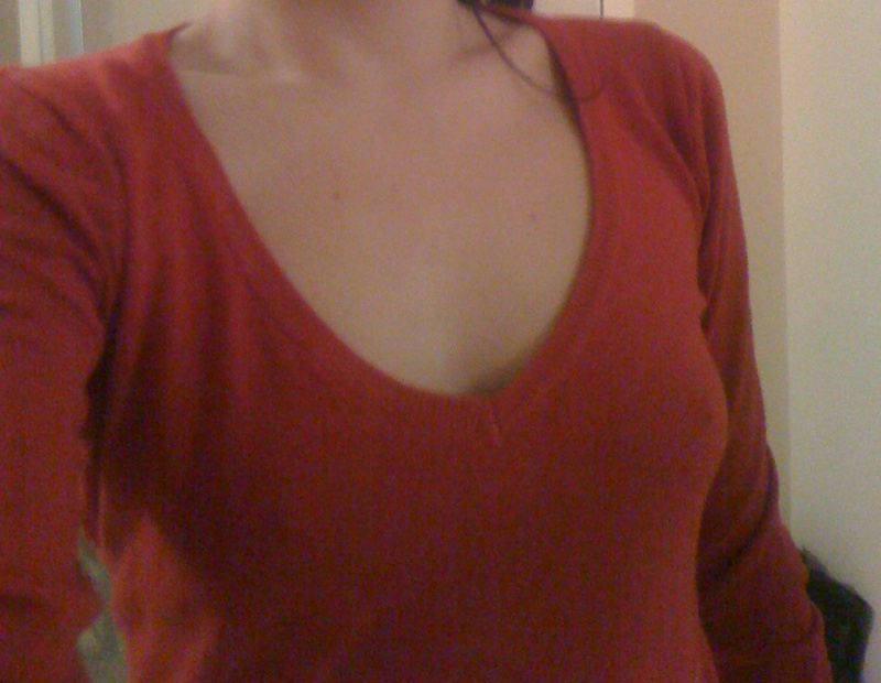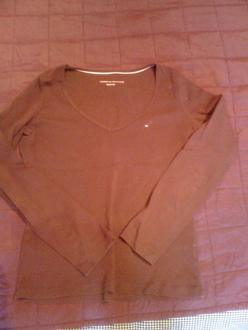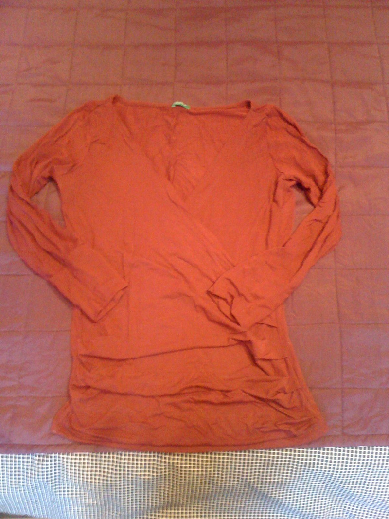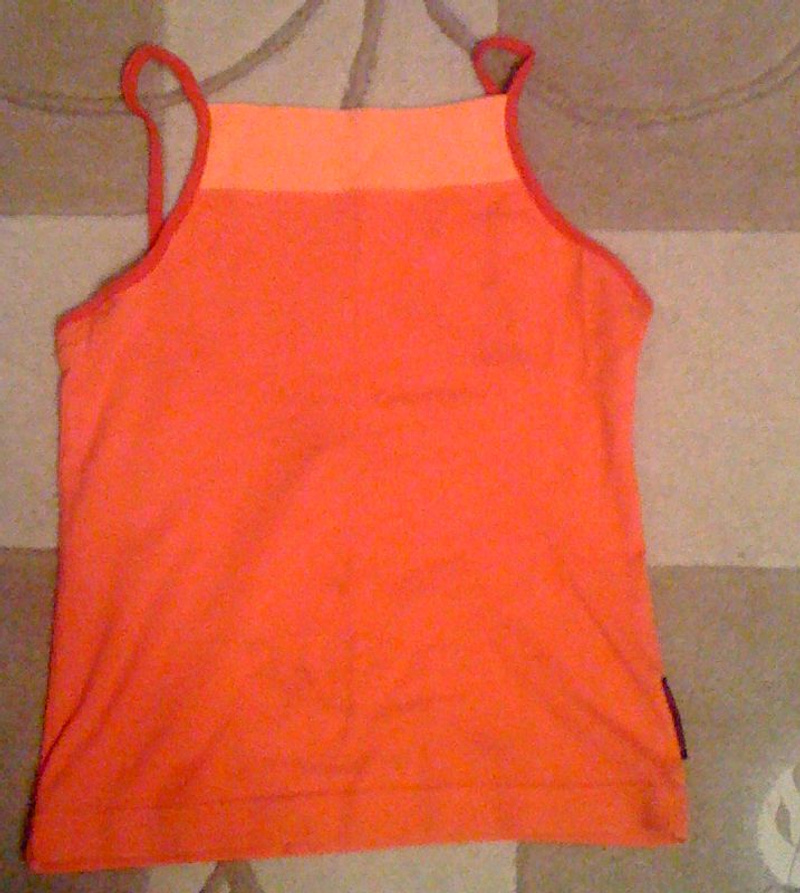 3. Оранжевая маечка Kappa. Подойдет скорее совсем на 42. Я носила дома. Интересный фасон - сзади открытая спина. 50 рублей.