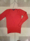 Продам красный трикотажный пуловерю Покупала в Bershke год назад. Цвет красный, не такой как на фото, а прям классический. V-образный вырез, высок ие манжеты, красиво подчеркивает фигуру. Одевала раза 3, все-таки и цвет и фасон не мои. Размер ближе к 44, маркировка М 28. Цена 150 руб.Актуально