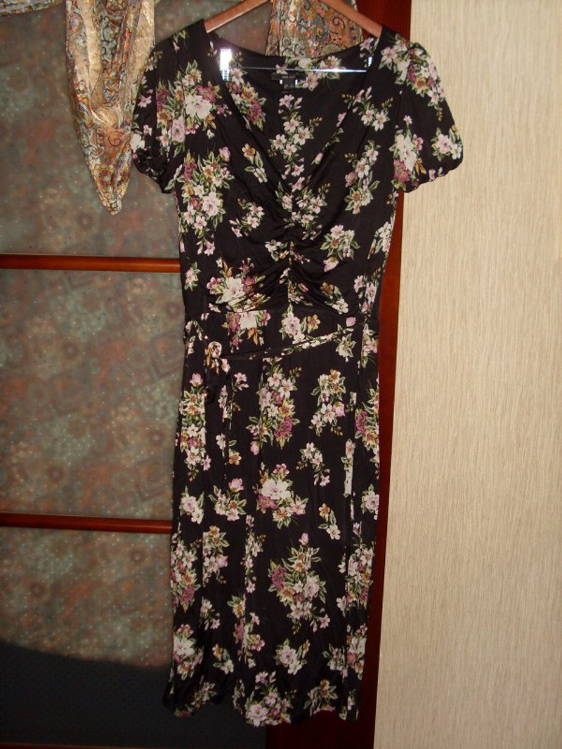 2. Платье Promod - новое, идеально к 8 марта! Длинное, скроено по косой, сочетание бархатаи атласа, на грудке "качелька". Р-р 46 (ориентировочно) - 1500 руб.