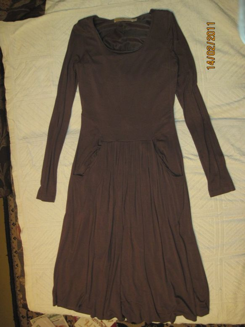 1. Платье SoFranch - бежевое трикотажное с карманами, на подкладке. Р-р 42-44 - 1000руб.