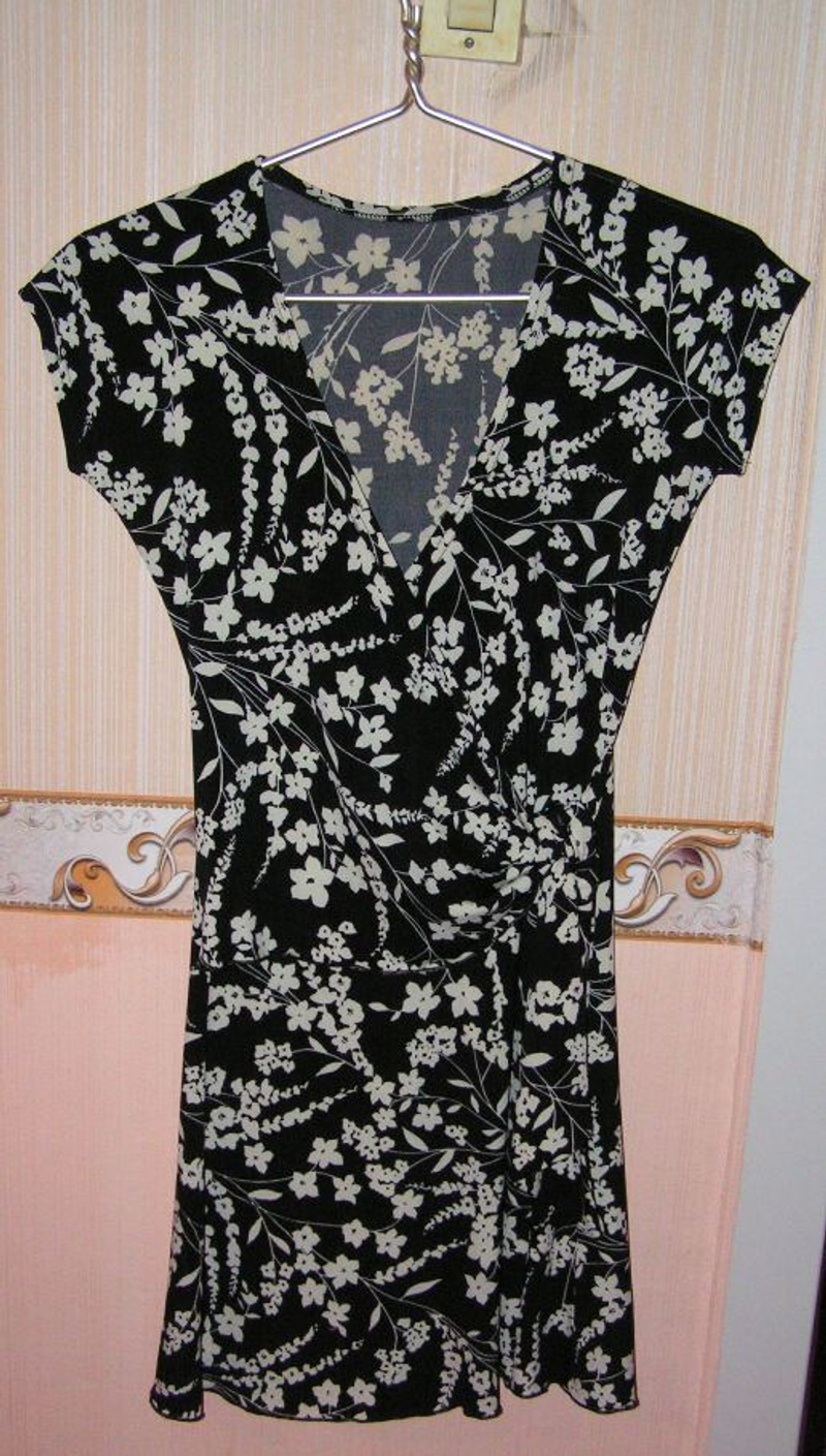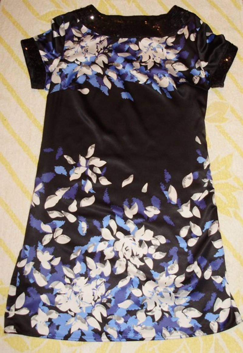 2. Платье Love Republic, сине-черно-белая цветовая гамма в цветах. Прекрасно смотрится как с поясом, так и без него. Цена 800р