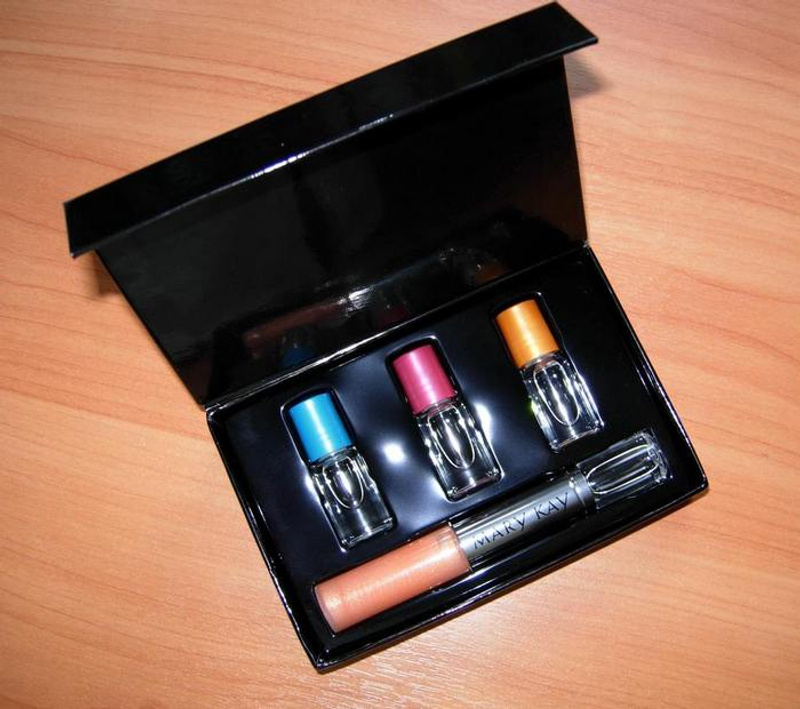 Состав набора: 4 туал. воды в мини формате с роликом (Коттон, Маракуйя, Янтарь и Жимолость) + блеск для губ , и все это можно соеденить + подарочная коробочка.