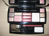 Набор состоит из 2-х уровней: 1 ур. – тени, помады и т.д., а на 2-ом, выдвигающимся снизу, уровне – инструменты для нанесения макияжа.