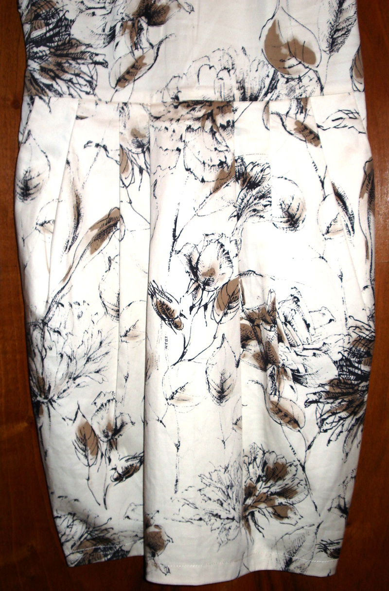 Размер 44, на рост 163см длина до колен, лиф скроен по фигуре четко, юбка - от талии заложены крупные складки, к низу чуть заужена, сзади разрез, карманы в боковых швах! Очень хорошо садится на фигуру - ткань хлопок с небольшим добавлением стрейча, легка к уходе