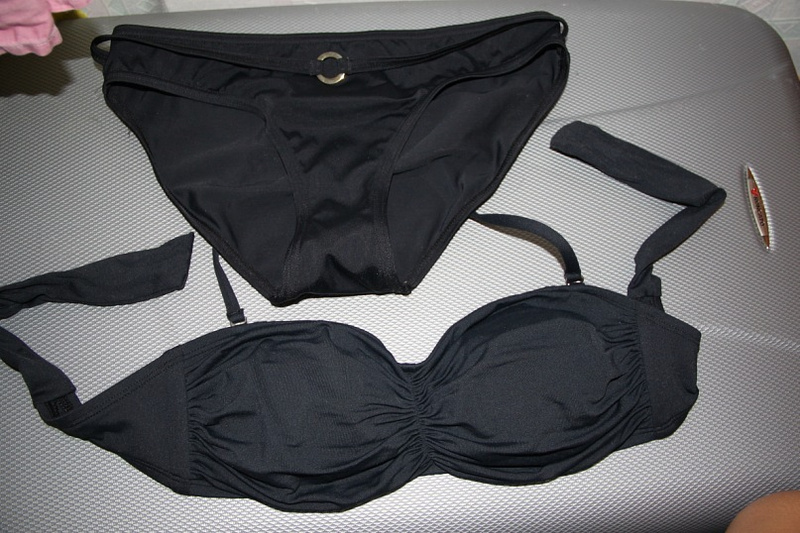 от DKNY оранжевые с розовым и бикини сиреневые с нежно-оранжевым - размер S, подойдут на 44-46