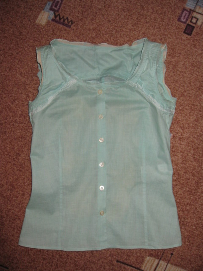 маечка светло бирюзового цвета с вышивкой, бисер на 42-44 размер - 150 руб., с этикеткой