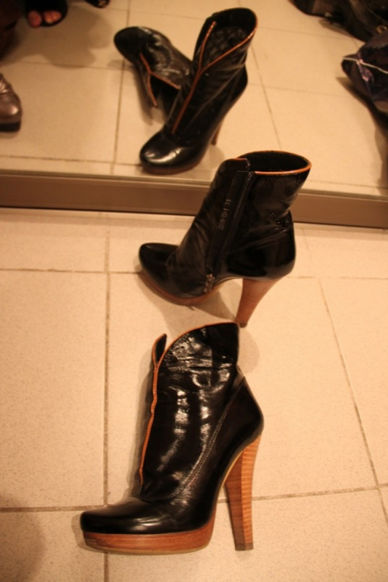 1. лаковые демисезонные сапоги, размер 37, на низкой устойчивой подошве, совсем не скользкие, состояние очень хорошее. 800 руб