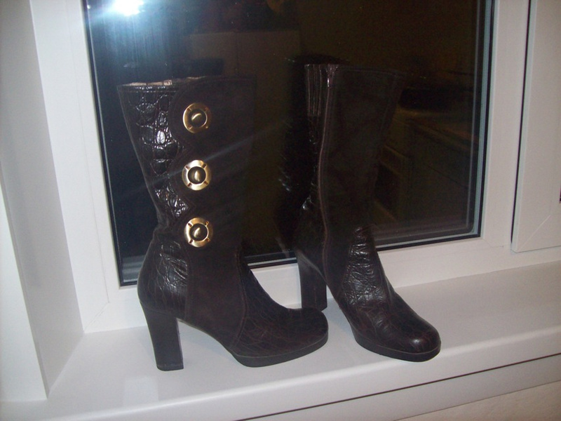 еще есть предложение такое: сапоги CorsoComo, размер тот же - маркировка 40. можно на 39. но на узкие икры(!) , натуральная бежевая кожа, внутри мягкий велюр, кожаный наборный каблук, сапоги дорогие, но я отдам всего за 400 рублей - с учетом того, что придется подремонтировать каблук (там цена вопроса прибл. 200 руб). вот за эти деньги Вы получаете отличные сапоги. сама ремонтом не хочу заниматься, времени нет.
