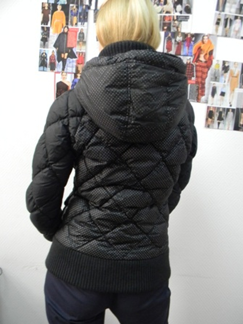Пуховик Grace Reason короткий на замке с капюшоном, очень приятный трикотажный шерстяной воротник и манжет, потайные карманы, перфорированная ткань, стёжка по диагонали. На манжете есть дырочка для большого пальца. Верх - 100% полиамид, наполнитель - 70% пух, 30% перо. Цвет черный.Made in Italy. Размер S. Цена 6000р