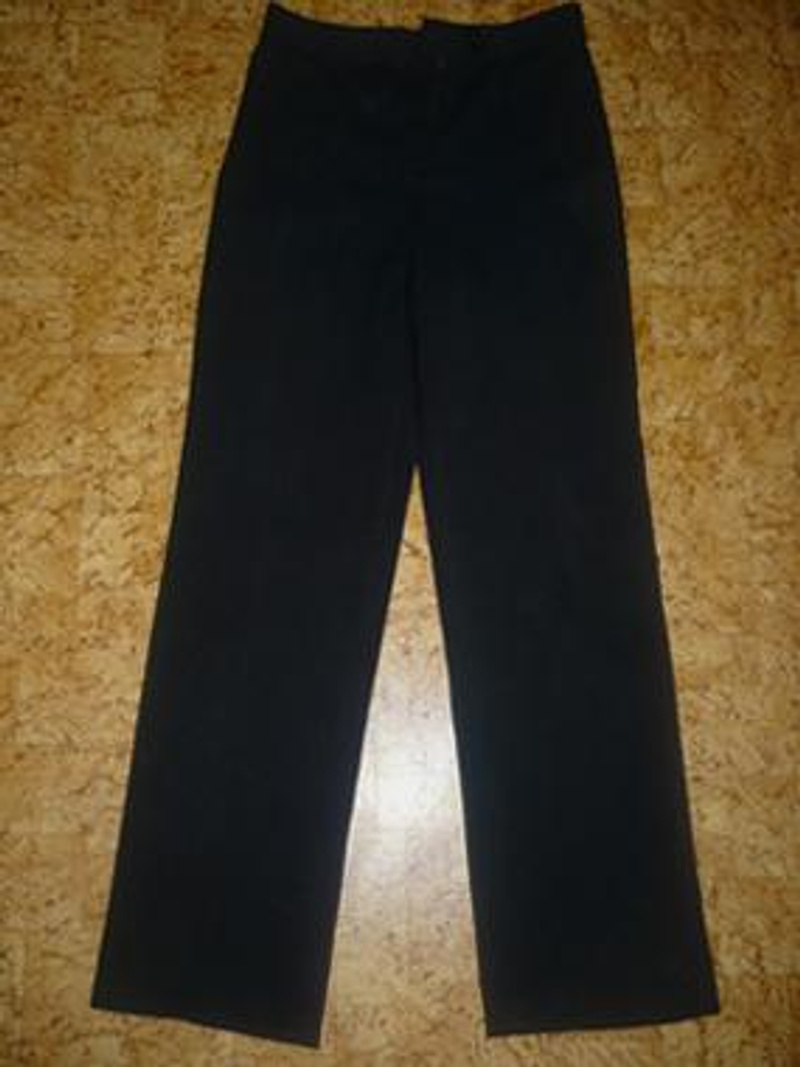 2. Черные прямые брюки. Ткань плотная, черная с небольшим добавлением блеска.Привезены из Германии. Размер 44-46. Цена - 200 руб.