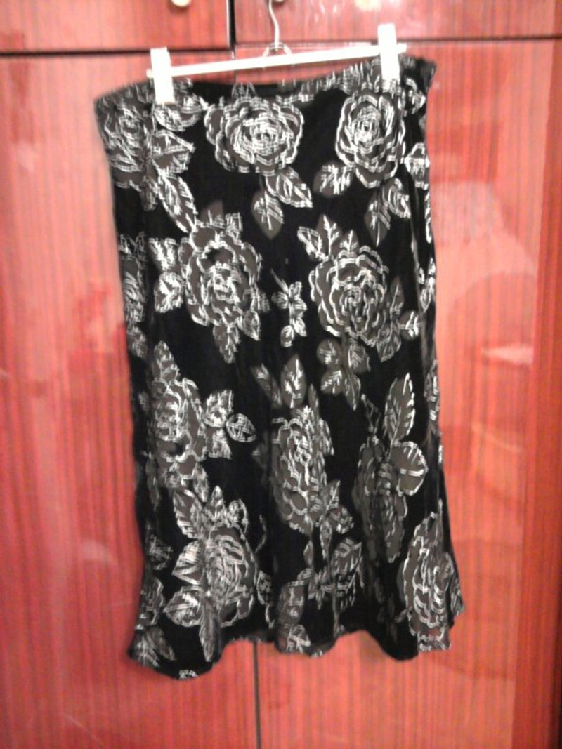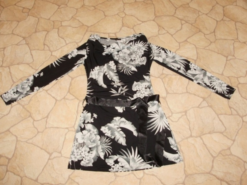 1) платье с запАхом, на завязках сбоку, р. 42-44 (может быть, даже 46). черное в бежевые цветы. надето 2разаАктуально!