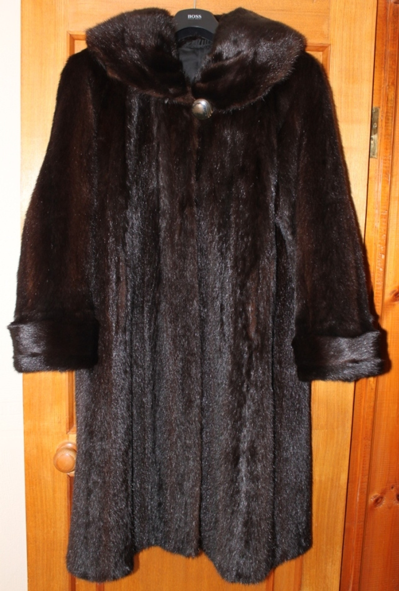 Продам шубу норковую, из целых спинок, с двусторонним капюшоном, б/у, автоледи, размер 44, цвет - фиолетовый. Капюшон, рукава, пояс затягиваются кулисками.Продано