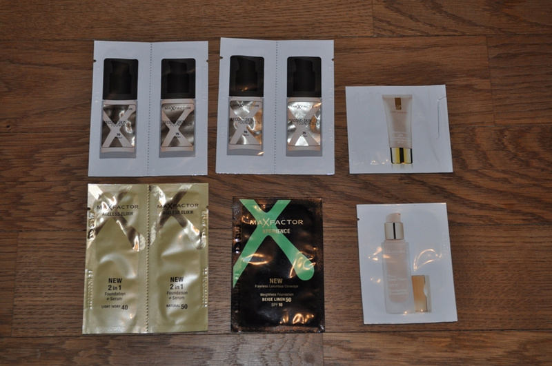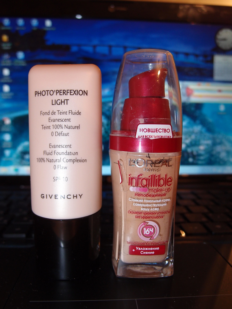 1. Тональный крем МаксФактор "Экспириенс" №50 (примерно светло-бежевый). Пробывала такой у подруги - очень понравился. Легко и тонко ложится, не ощущается на коже. Покрытие среднее. 400р.
